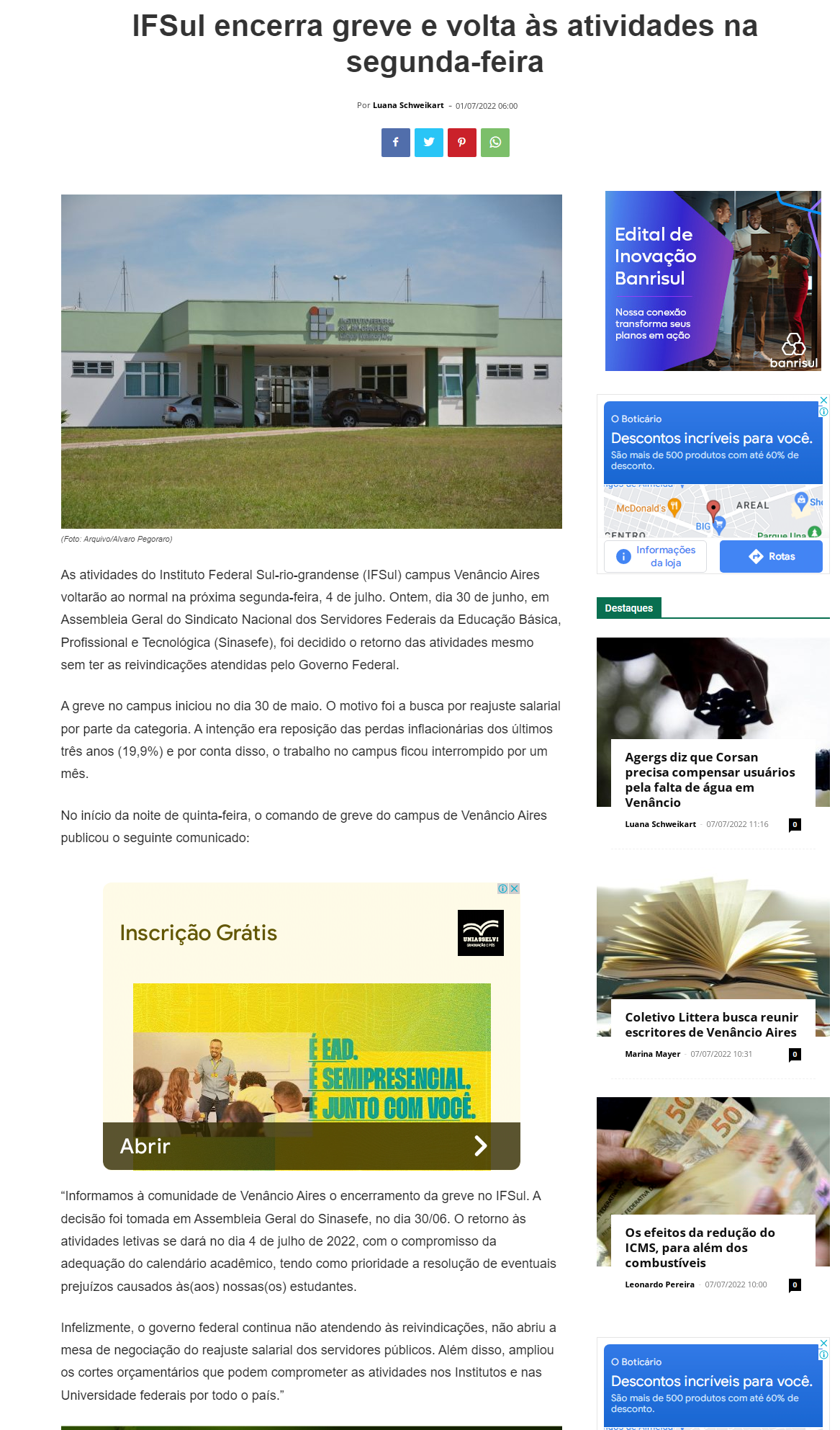Folha do Mate - IFSul encerra greve e volta às atividades na segunda-feira