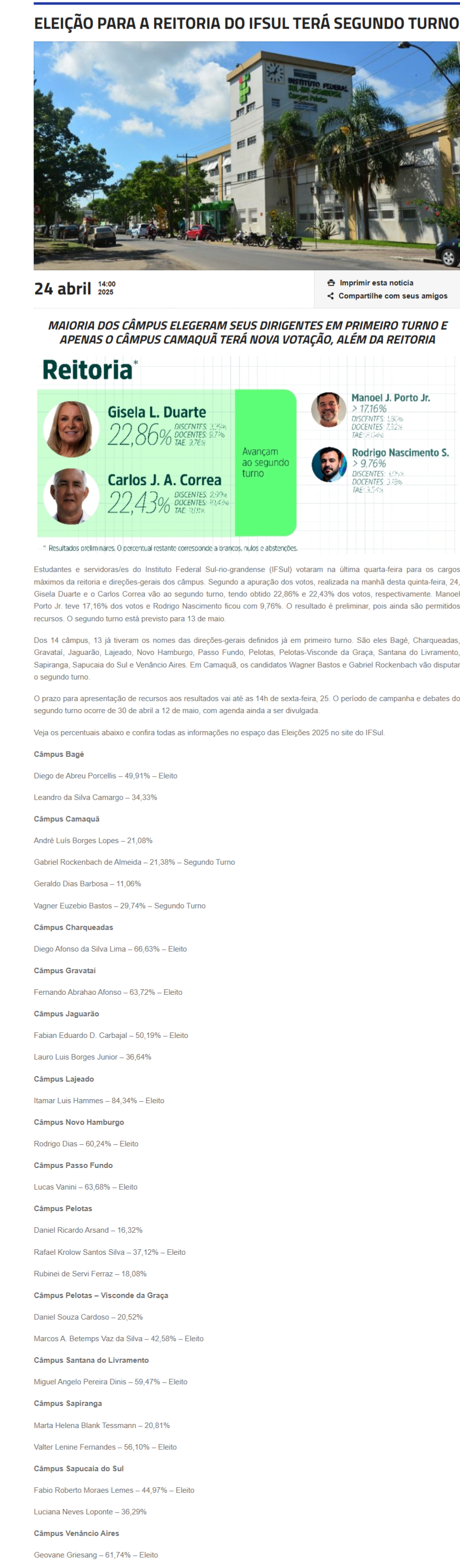 Diário da Manhã - Eleição para a reitoria do IFSul terá segundo turno