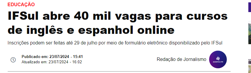 Rádio Acústica FM - IFSul abre 40 mil vagas para cursos de inglês e espanhol online