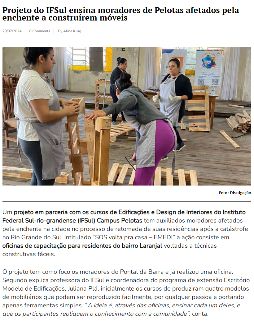 O Bairrista - Projeto do IFSul ensina moradores de Pelotas afetados pela enchente a construírem móveis