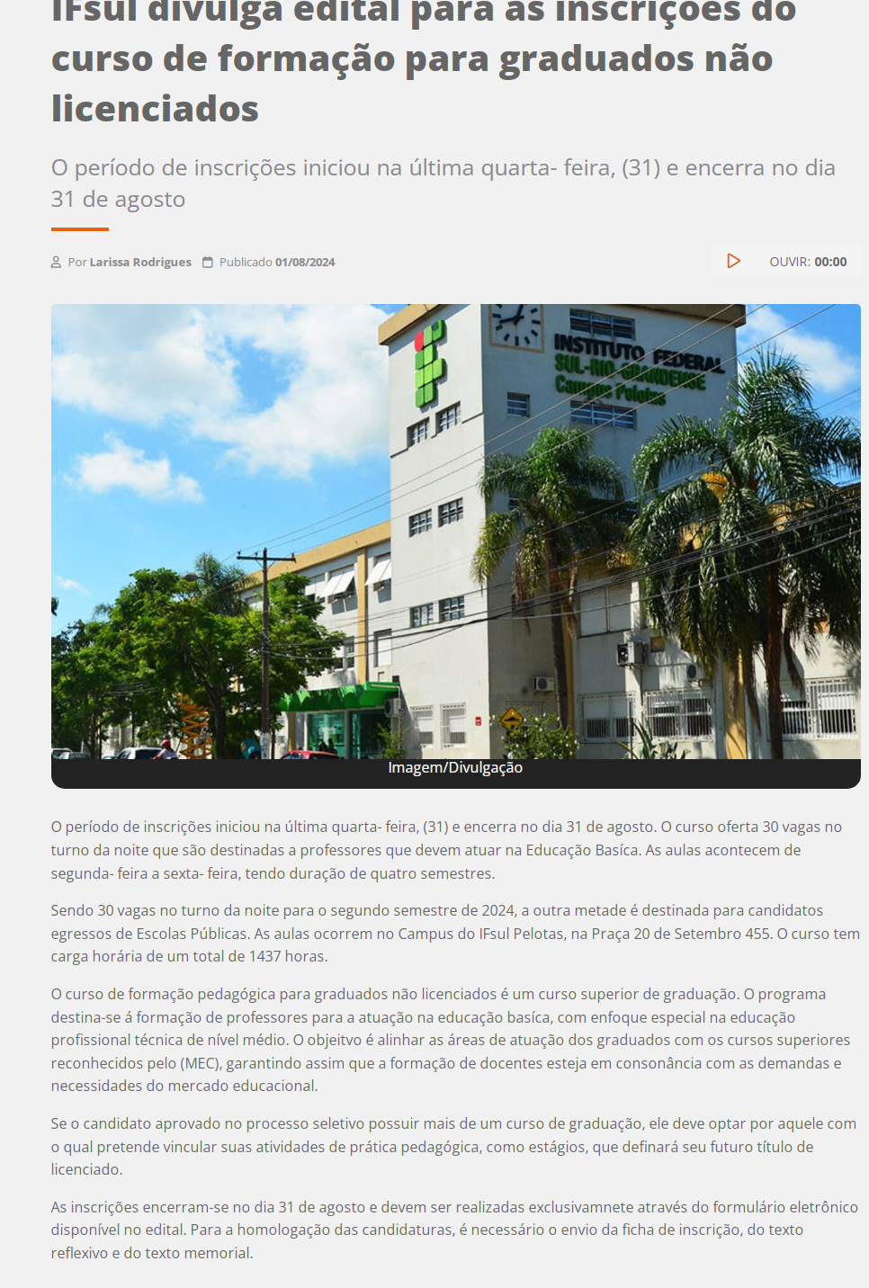 Clic Pelotas - IFsul divulga edital para as inscrições do curso de formação para graduados não licenciados