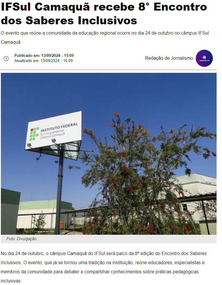 Rádio Acústica FM - IFSul Camaquã recebe 8° Encontro dos Saberes Inclusivos