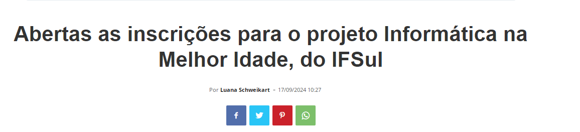 Folha do Mate - Abertas as inscrições para o projeto Informática na Melhor Idade, do IFSul