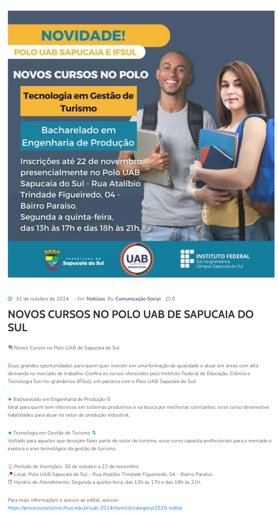 Prefeitura de Sapucaia do Sul - NOVOS CURSOS NO POLO UAB DE SAPUCAIA DO SUL