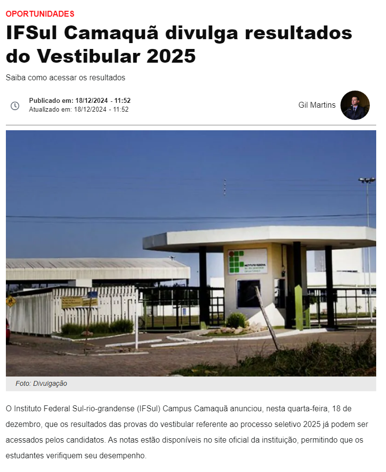Rádio Acústica FM - IFSul Camaquã divulga resultados do Vestibular 2025