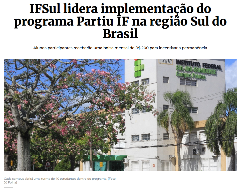 A Hora do Sul - IFSul lidera implementação do programa Partiu IF na Região Sul no Brasil