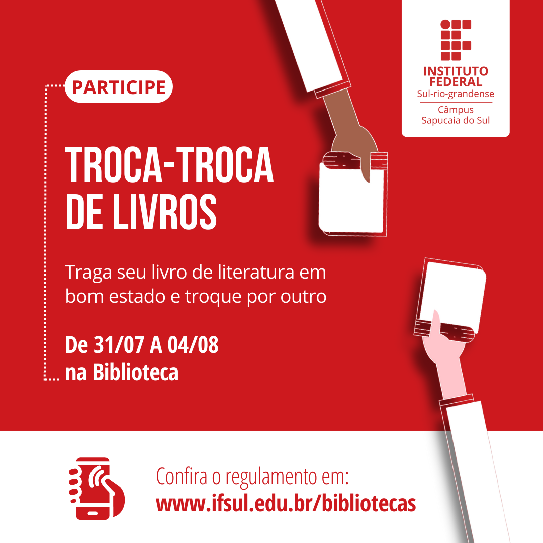 O Concurso Literário de Microcontos é uma atividade cultural promovida pela Biblioteca do Instituto Federal de Educação, Ciência e Tecnologia Sul-rio-grandense – Câmpus Sapucaia do Sul, como parte da 7ª Semana Nacional do Livro e da Biblioteca - 2025. O objetivo é incentivar a criatividade, a escrita e a leitura, promovendo a valorização da produção literária e o desenvolvimento da expressão artística. As inscrições ocorrerão de 07 à 17/10/2025. 📄 Confira o Regulamento: Clique aqui 📝 Inscreva-se no Concurso de Microcontos: Clique aqui E aqui vai uma dica: capriche no seu microconto e quem sabe você não é um dos nossos vencedores?