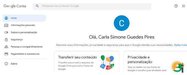 Passo 4: Pronto! Você será redirecionado para a conta institucional e a partir daqui é possível utilizar qualquer serviço do Suíte do Google (GSuite).