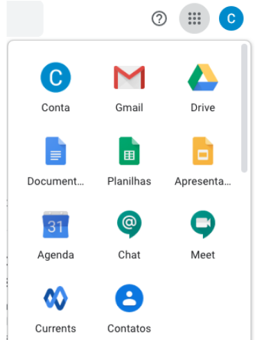 Caso queira utilizar qualquer aplicativo do G Suite, basta clicar no menu à direita.
