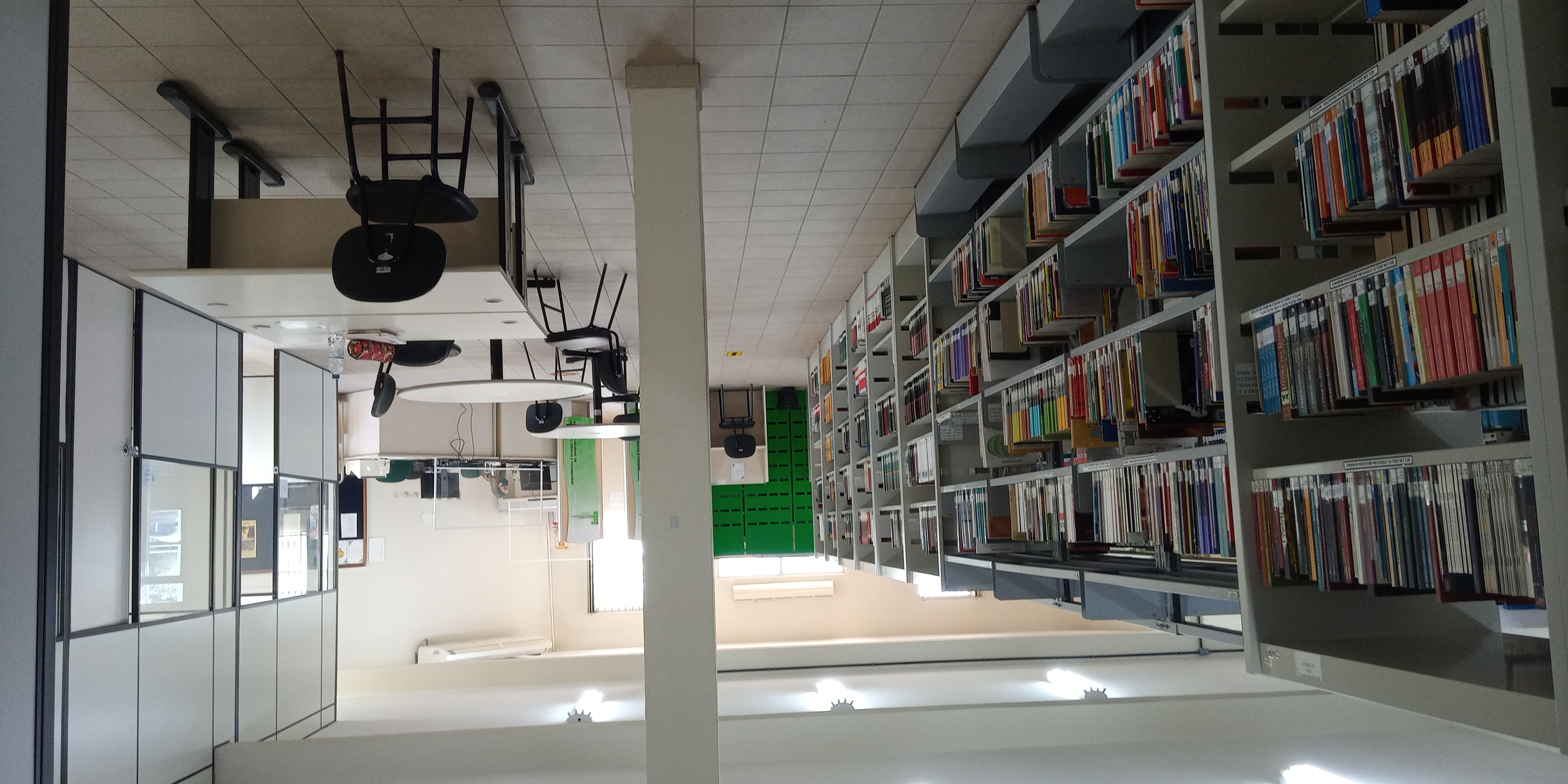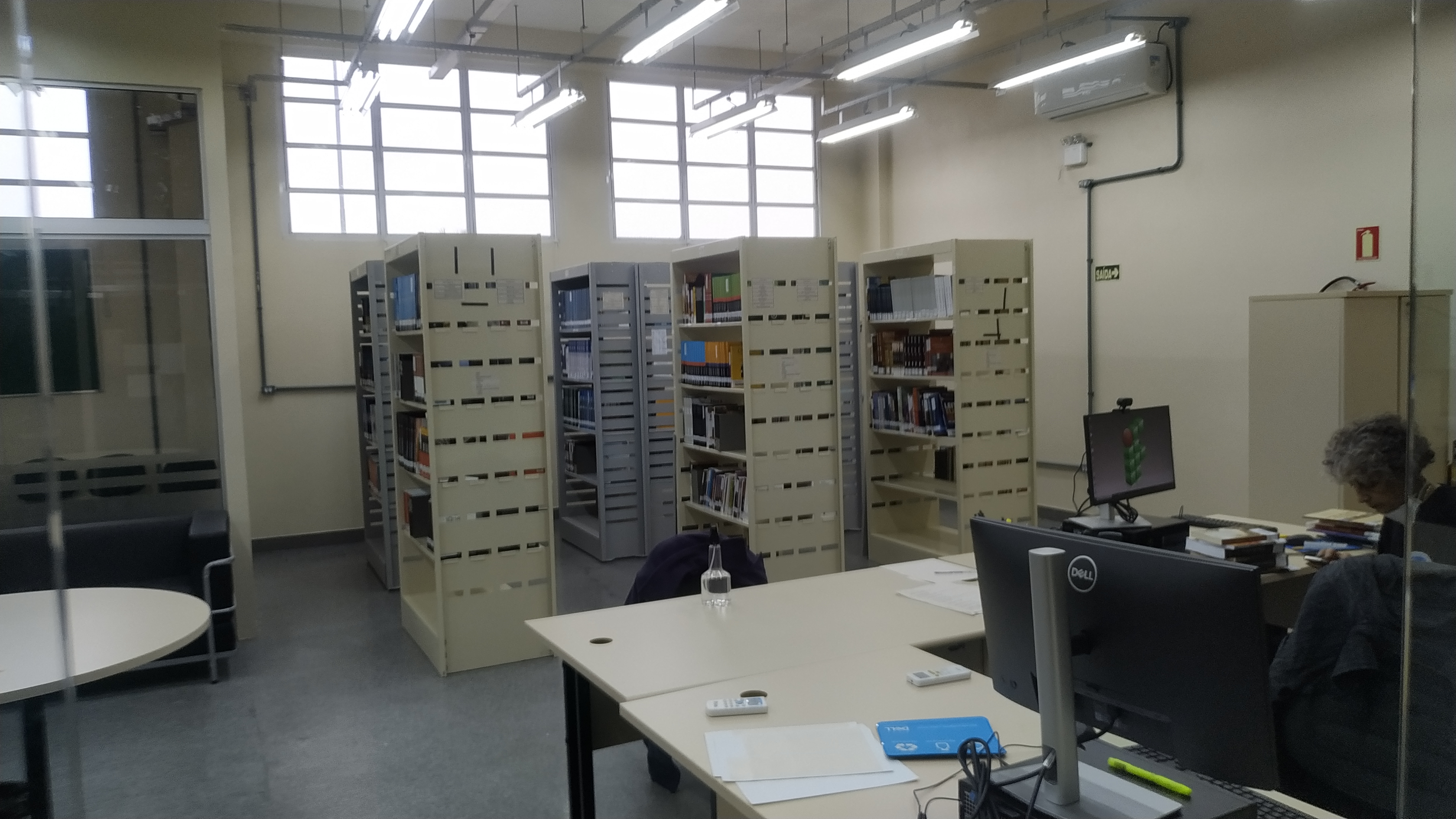 A Biblioteca está localizada no bloco administrativo e ocupa um espaço de 27 m².