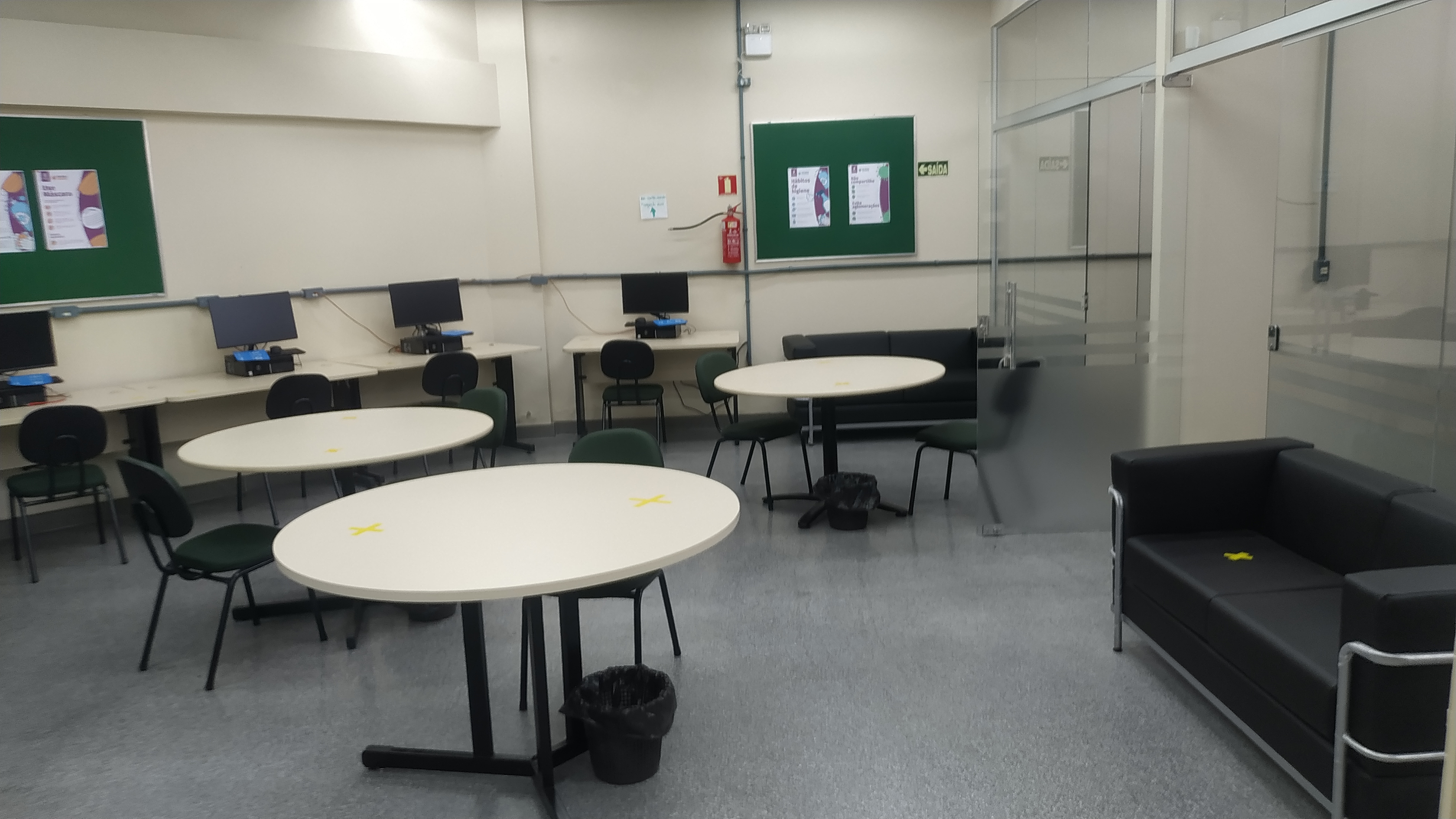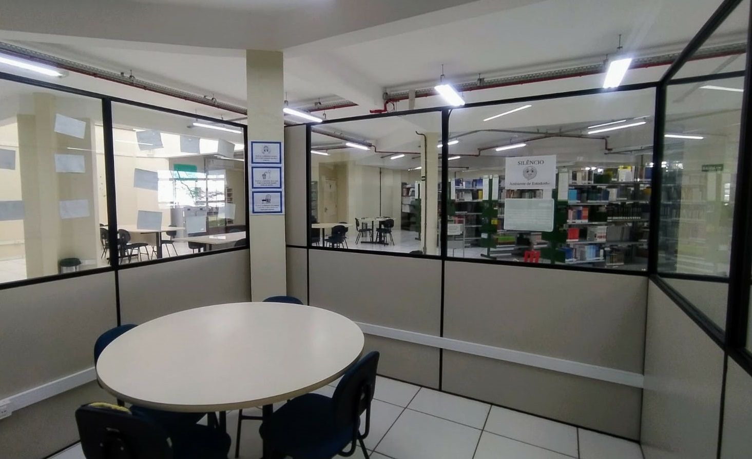 ● 3 mesas redondas para estudo em grupo, com capacidade média para até 4 pessoas.