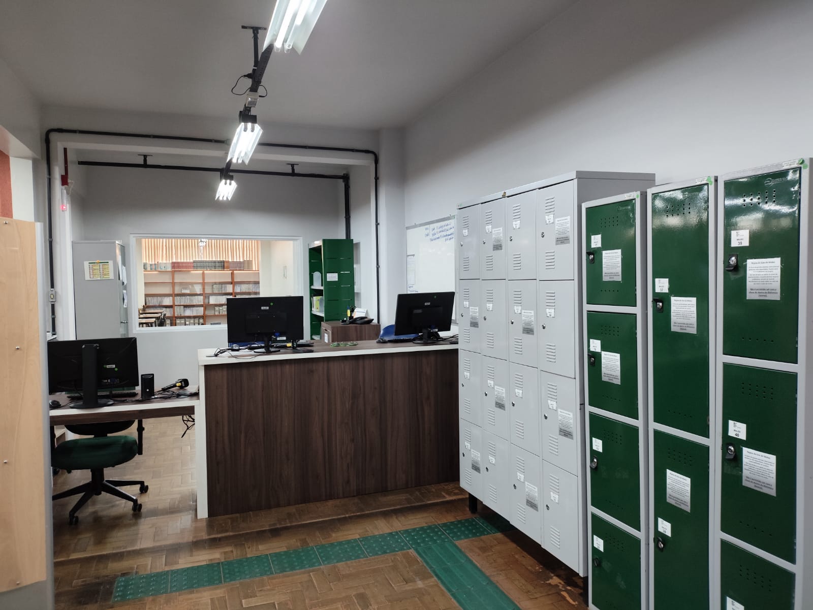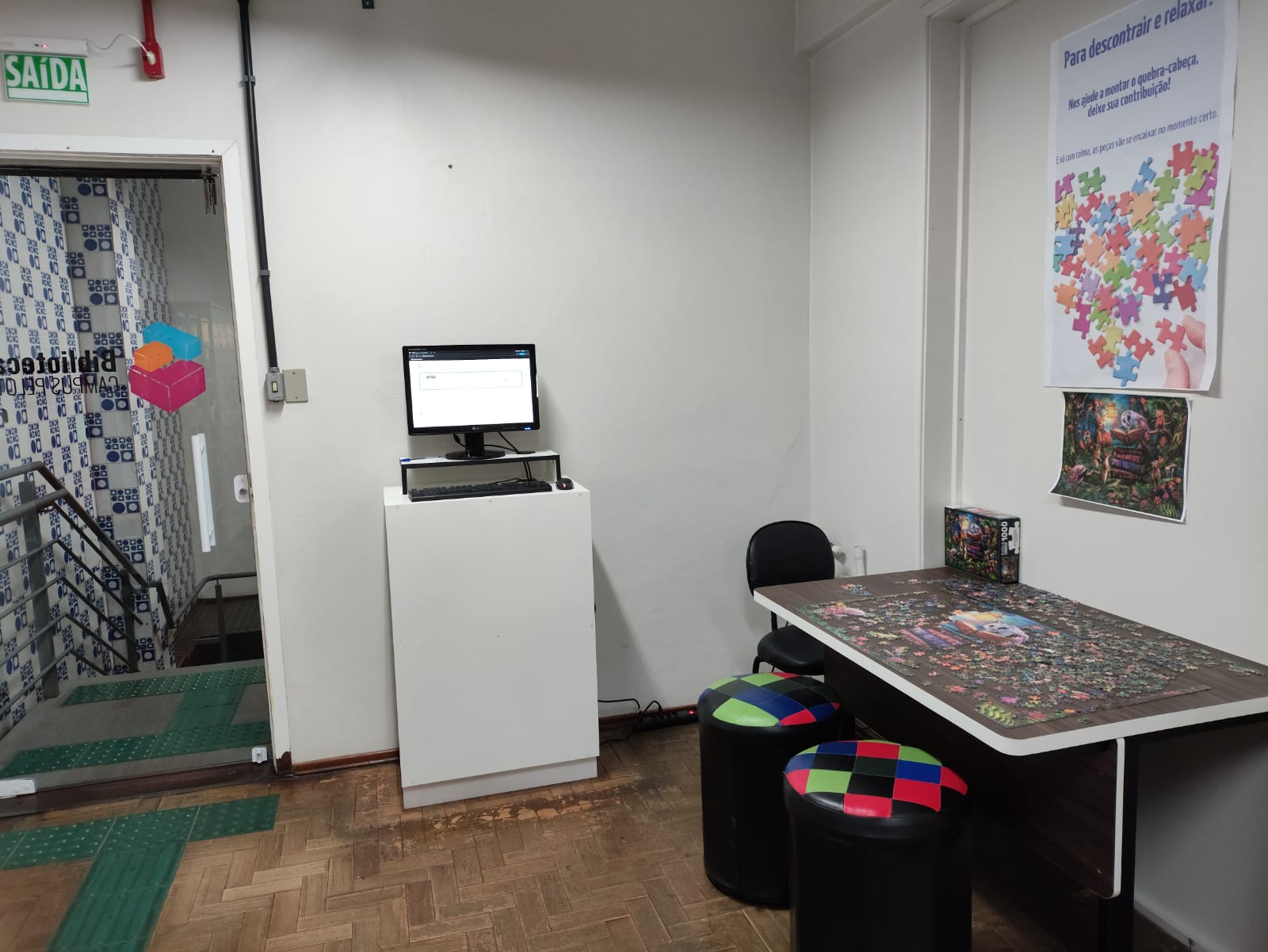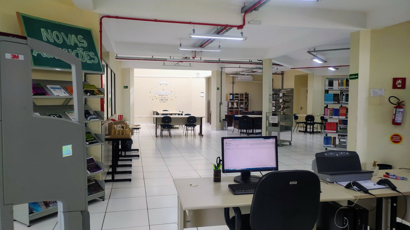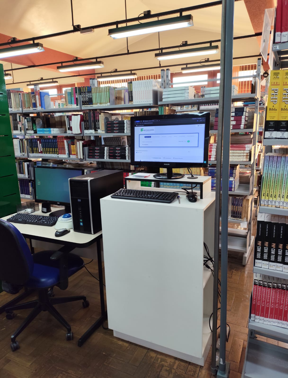 ● 6 computadores para consulta e pesquisa, distribuídos entre acervo e salão de estudos.
