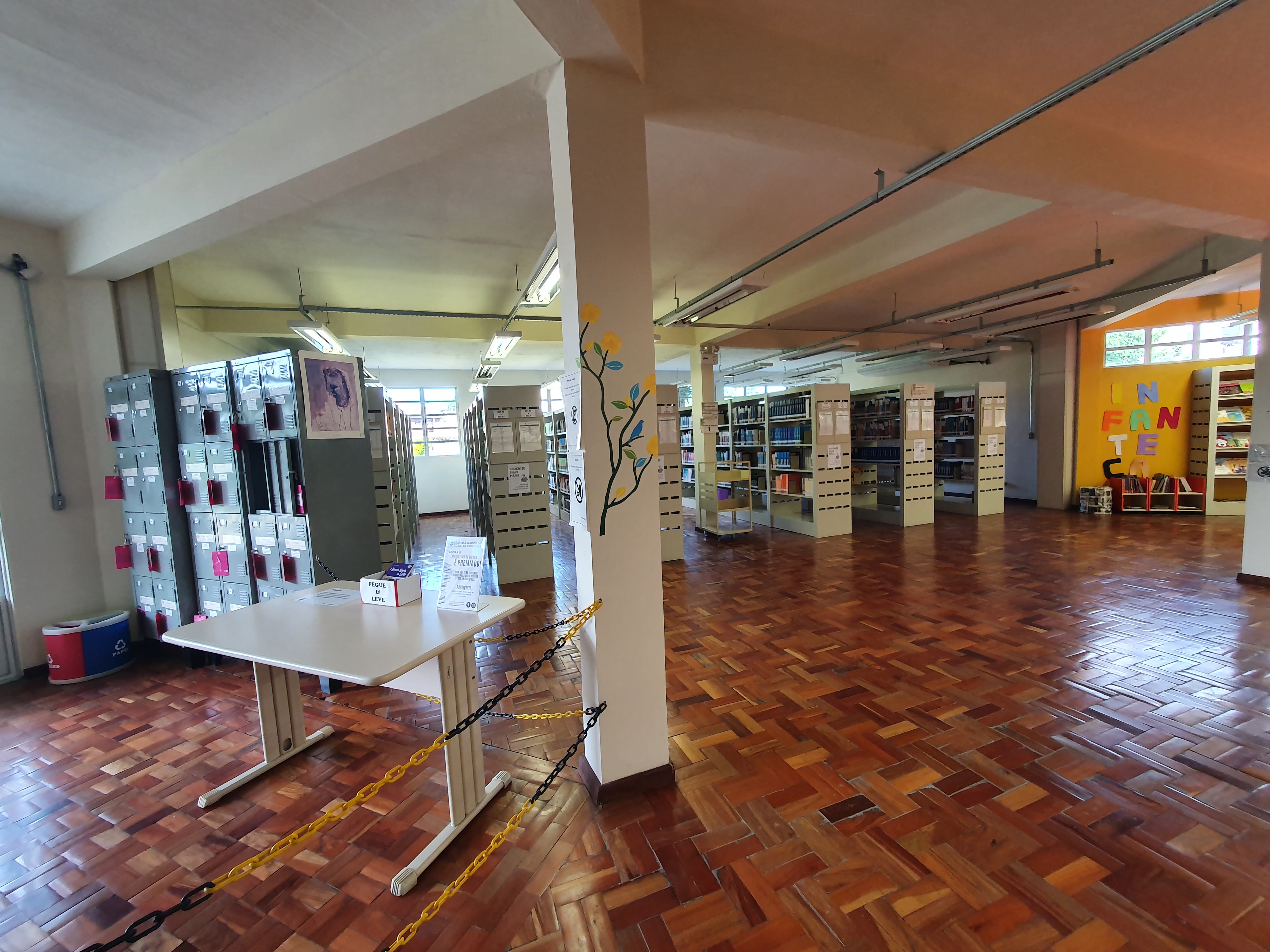 Seu acervo é composto por 1373 títulos, sendo eles 3314 exemplares de livros e 12 jogos de tabuleiro.