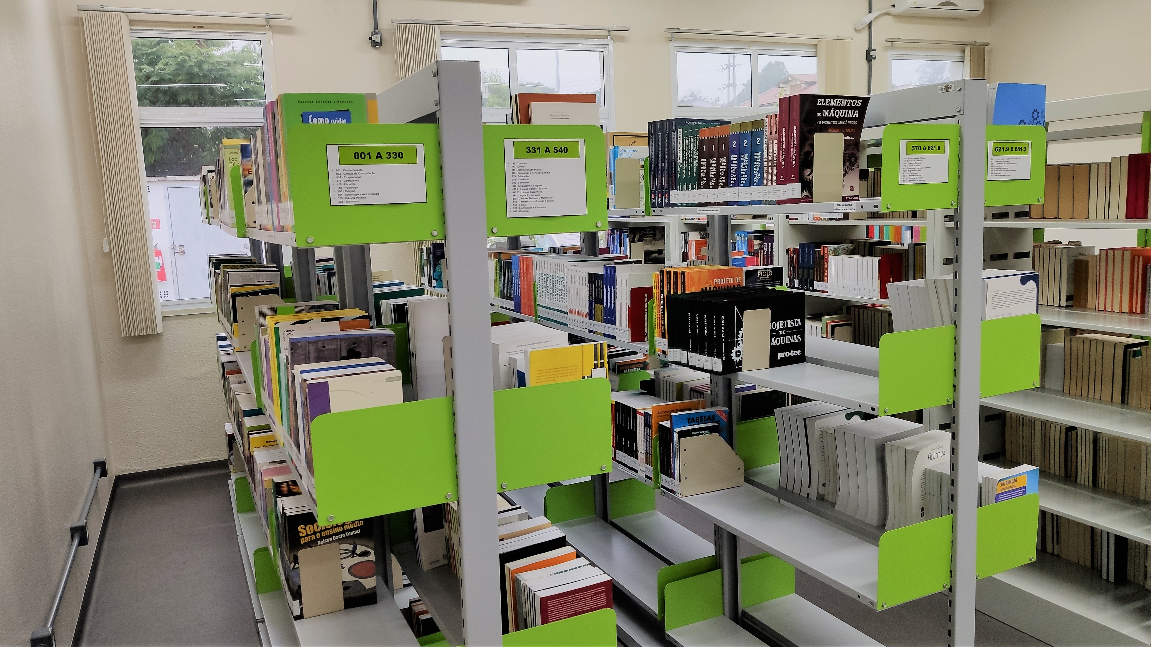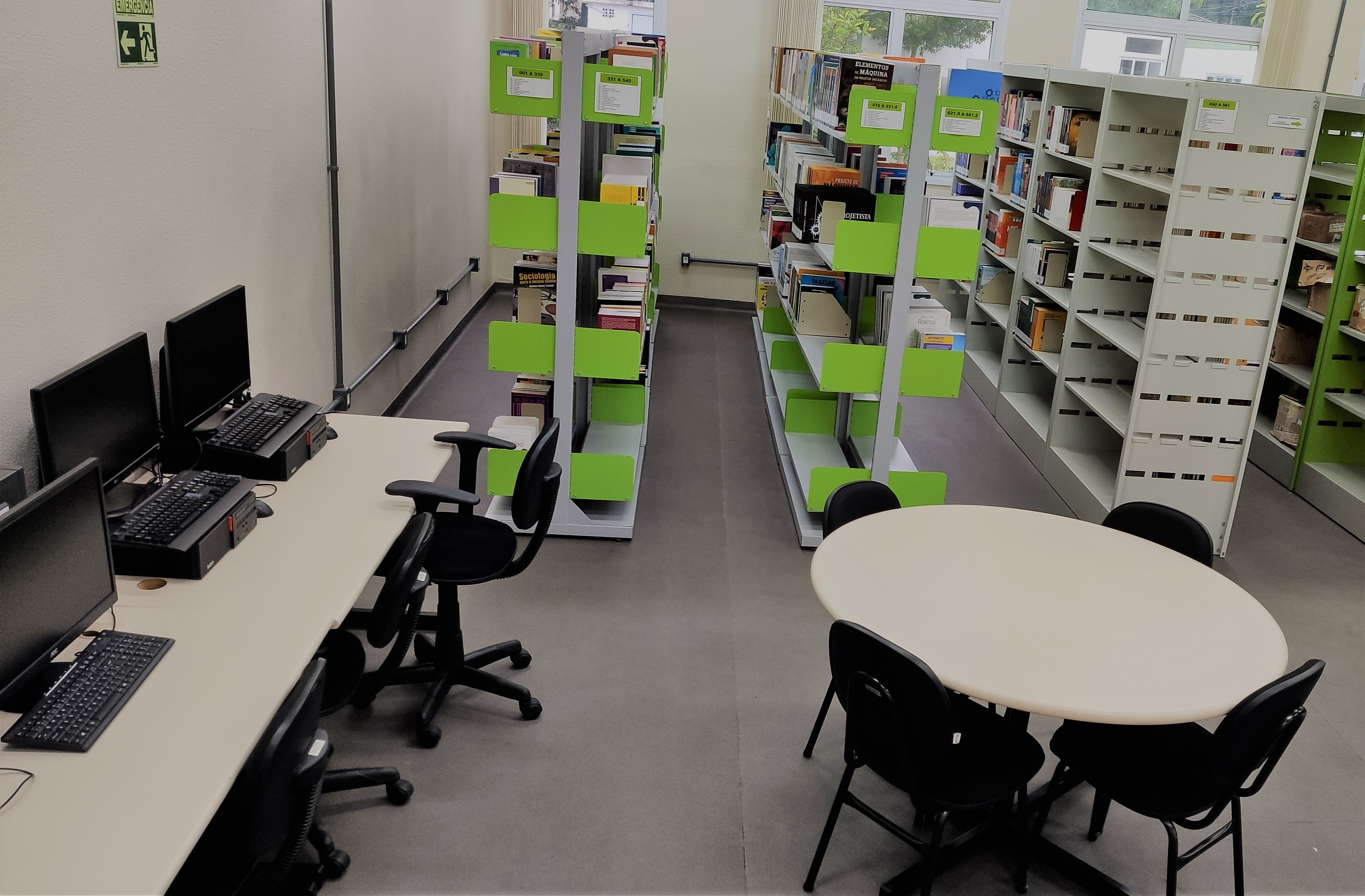 A Biblioteca está localizada no prédio central e ocupa 80,25 m².