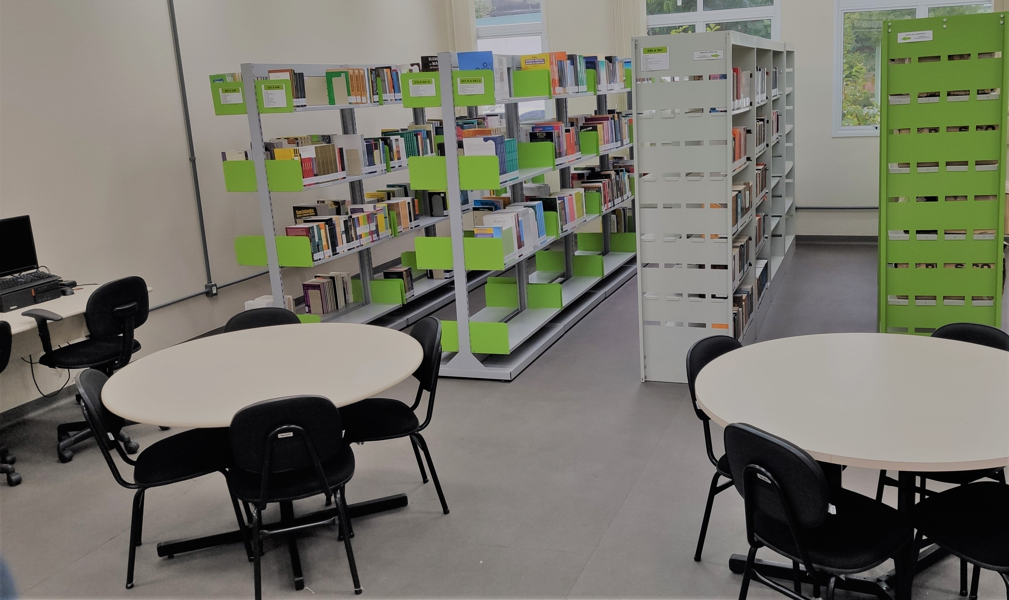 Seu acervo é composto por 1373 títulos, sendo eles 3314 exemplares de livros e 12 jogos de tabuleiro.