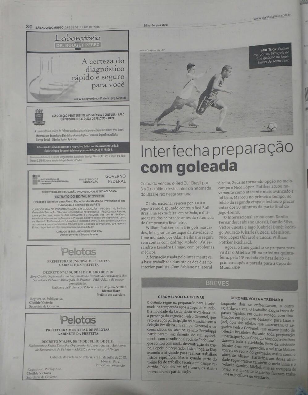 Publicado: Sábado, 14 de Julho de 2018, 10h45