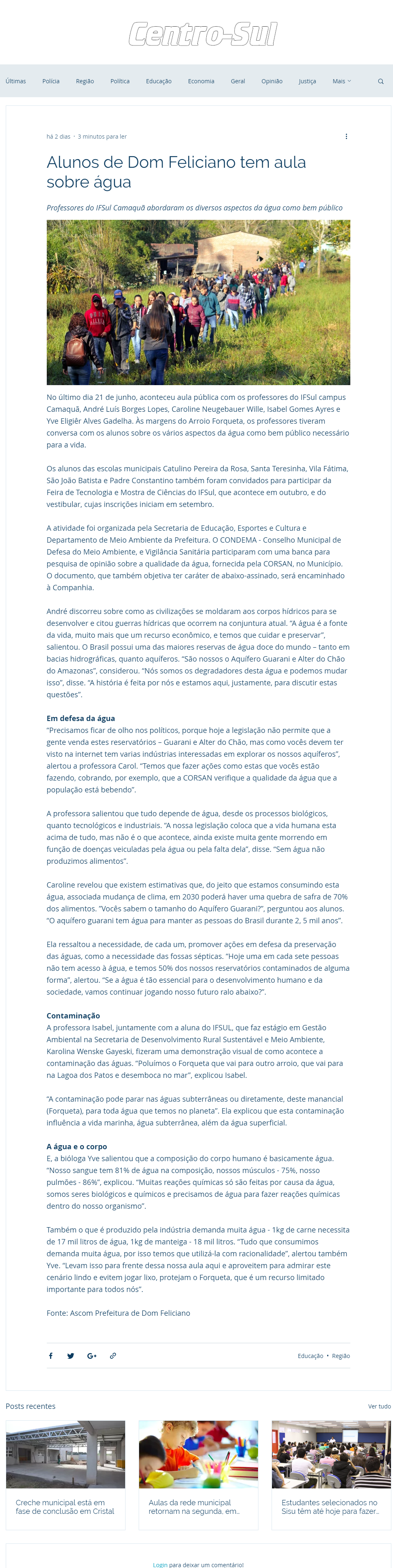 Centro-Sul - Alunos de Dom Feliciano tem aula sobre água