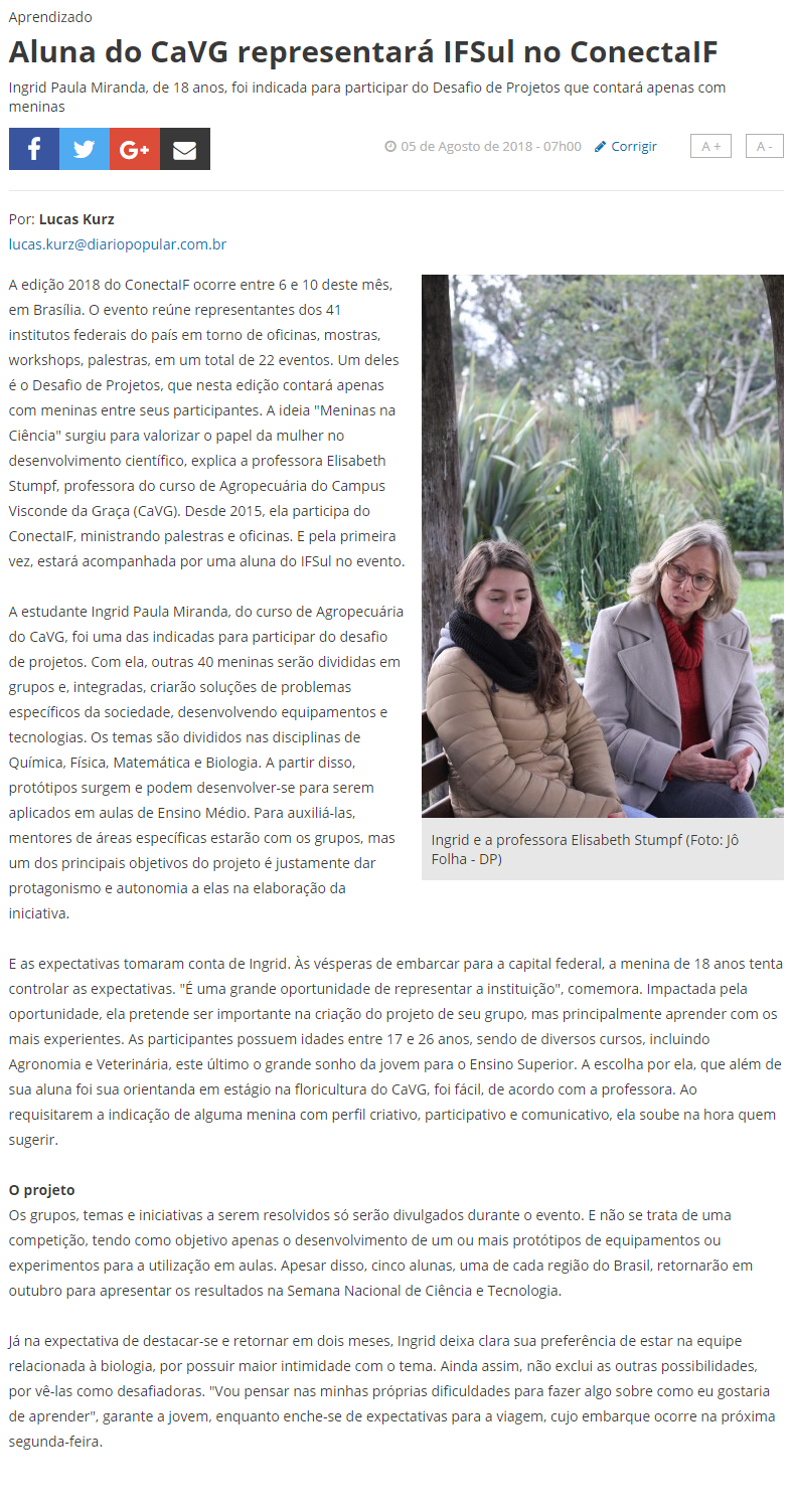 Diário Popular - Aluna do Cavg representará IFSul no Conecta IF (web)