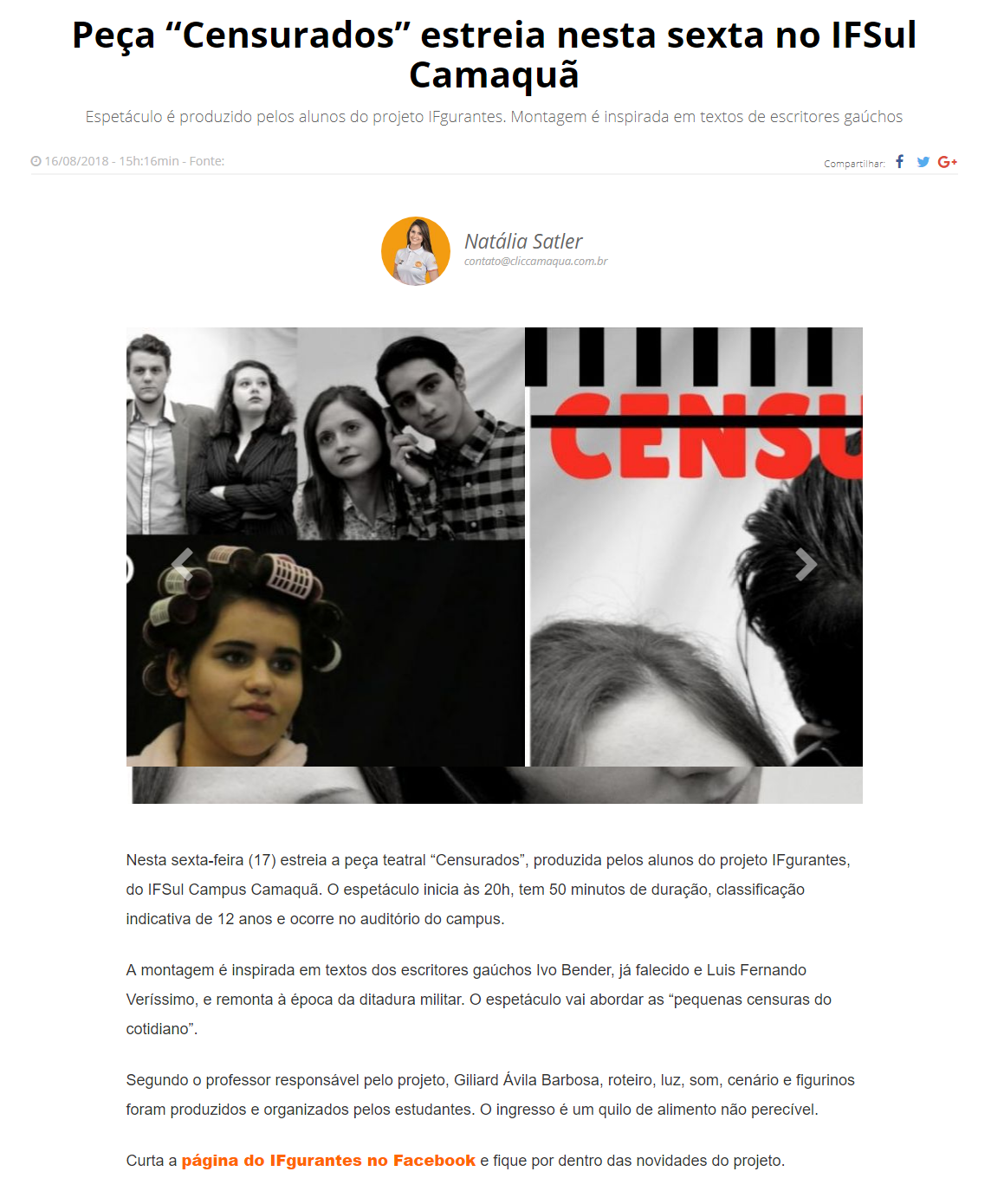 Clic Camaquã - Peça "Censurados" estreita nesta sexta no IFSul Camaquã