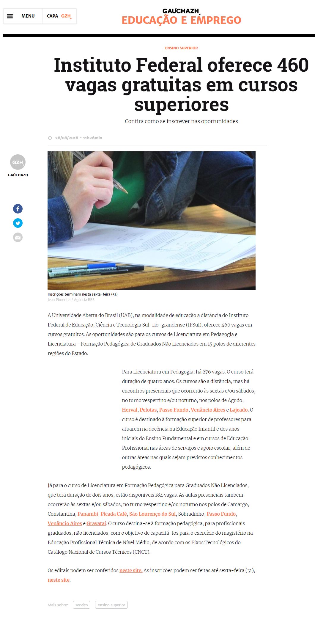 GaúchaZH - Instituto Federal oferece 460 vagas gratuitas em cursos superiores