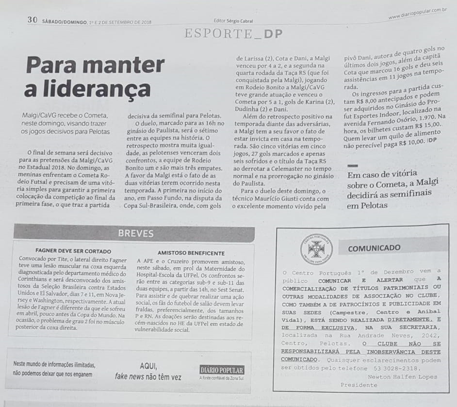 Publicado: Sábado, 01 de Setembro de 2018, 10h09