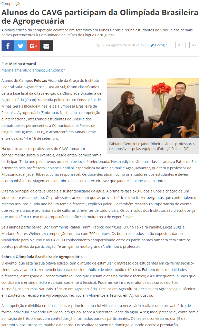 Diário Popular - Alunos do CaVG participam da Olimpíada Brasileira de Agropecuária