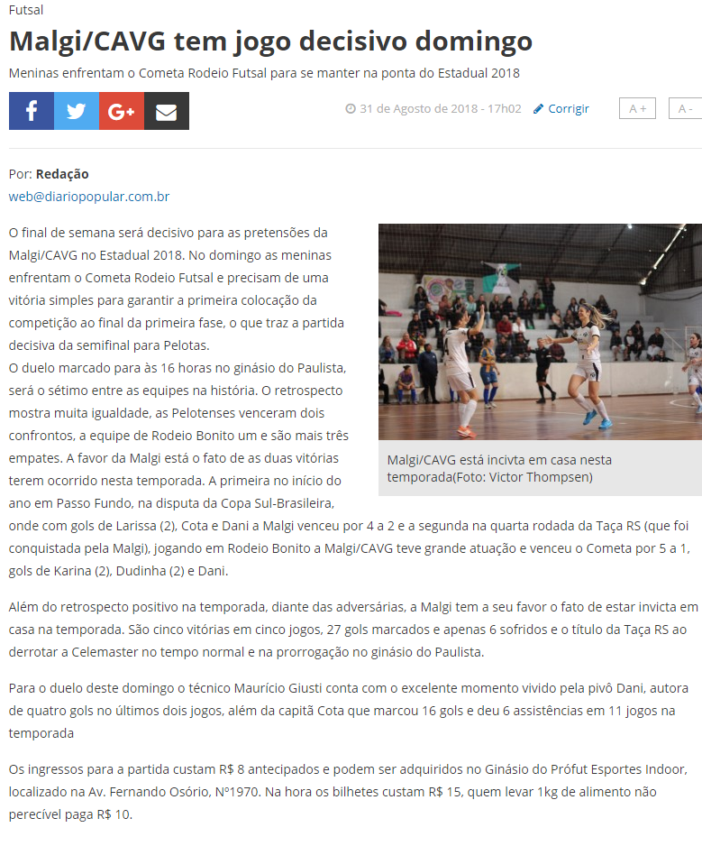 Diário Popular - Malgi/CaVG tem jogo decisivo domingo