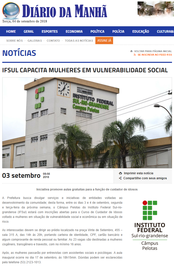 Diário da Manhã - IFSul capacita mulheres em vulnerabilidade social