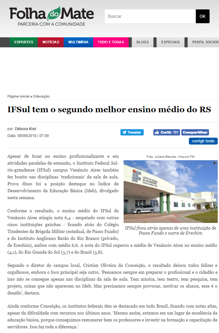 Folha do Mate - IFSul tem o segundo melhor ensino médio do RS