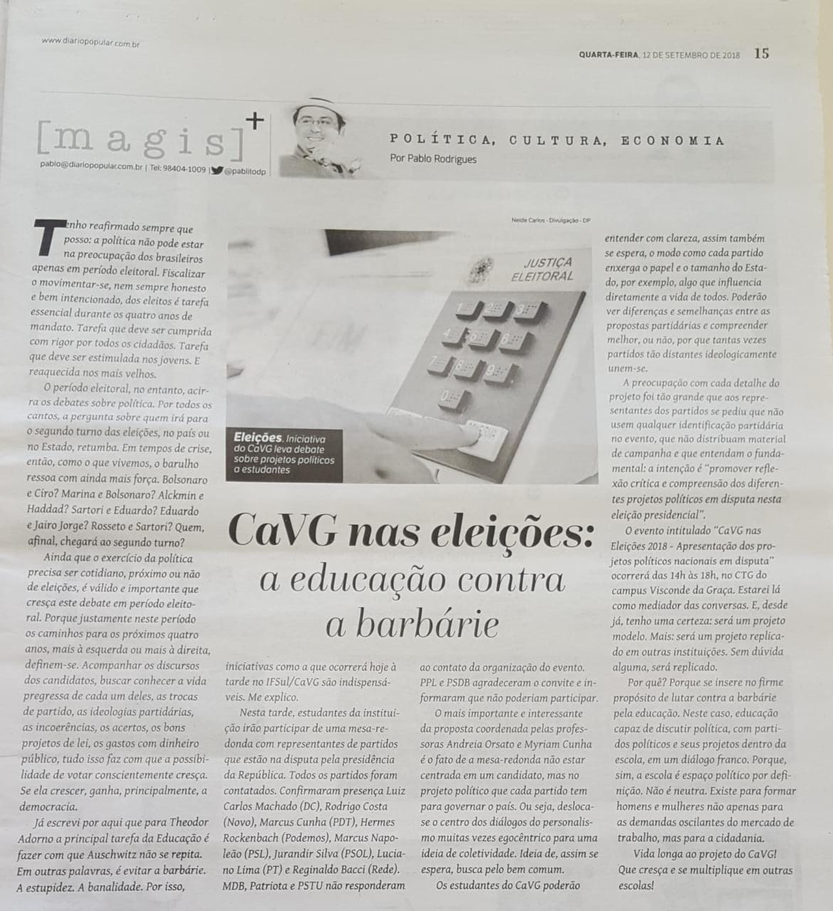 Diário Popular - CaVG nas eleições: a educação contra a barbárie