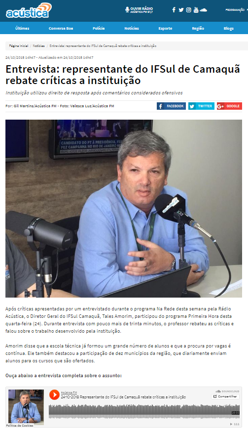 Acústica - Entrevista: representante do IFSul de Camaquã rebate críticas à instituição
