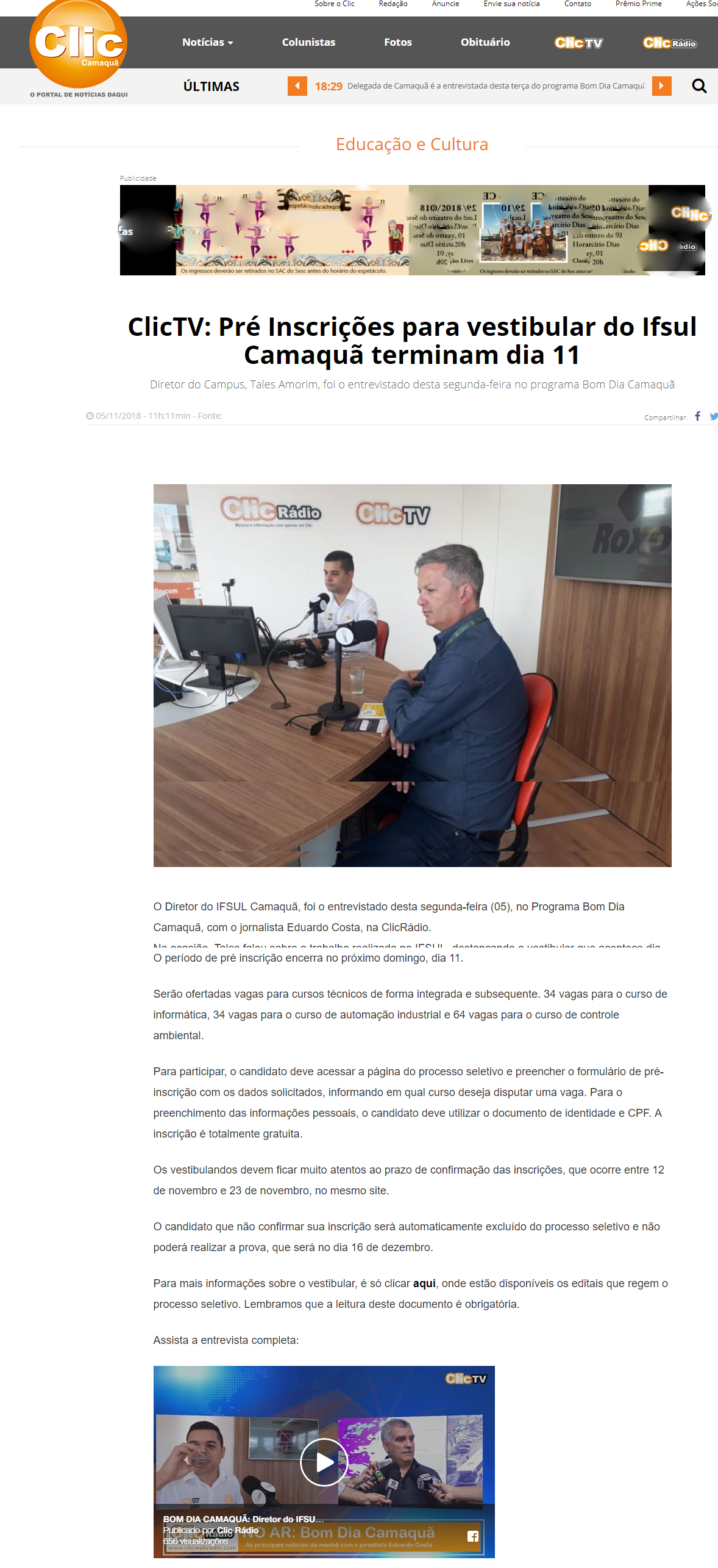 Clic Camaquã - Pré-inscrições para vestibular do IFSul terminam dia 11