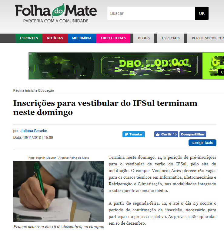 Folha do Mate - Inscrições para o vestibular do IFSul terminam neste domingo