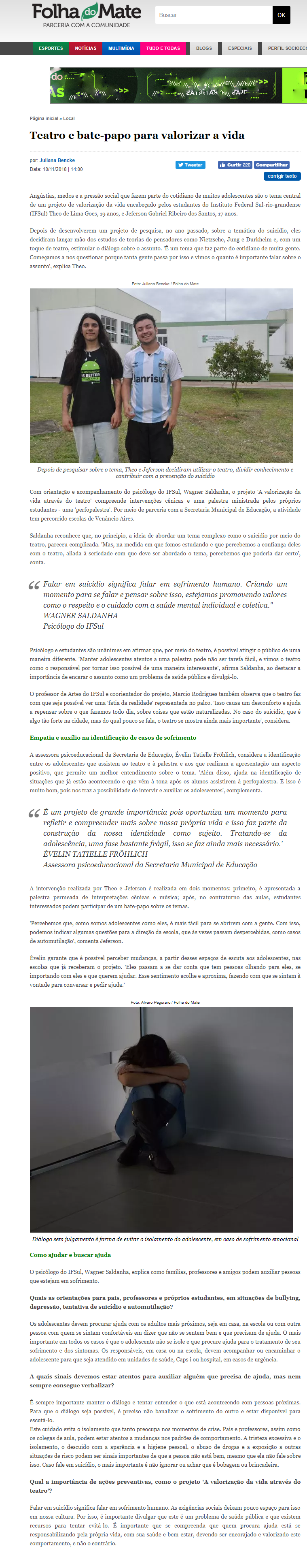 Folha do Mate - Teatro e bate-papo para valorizar a vida