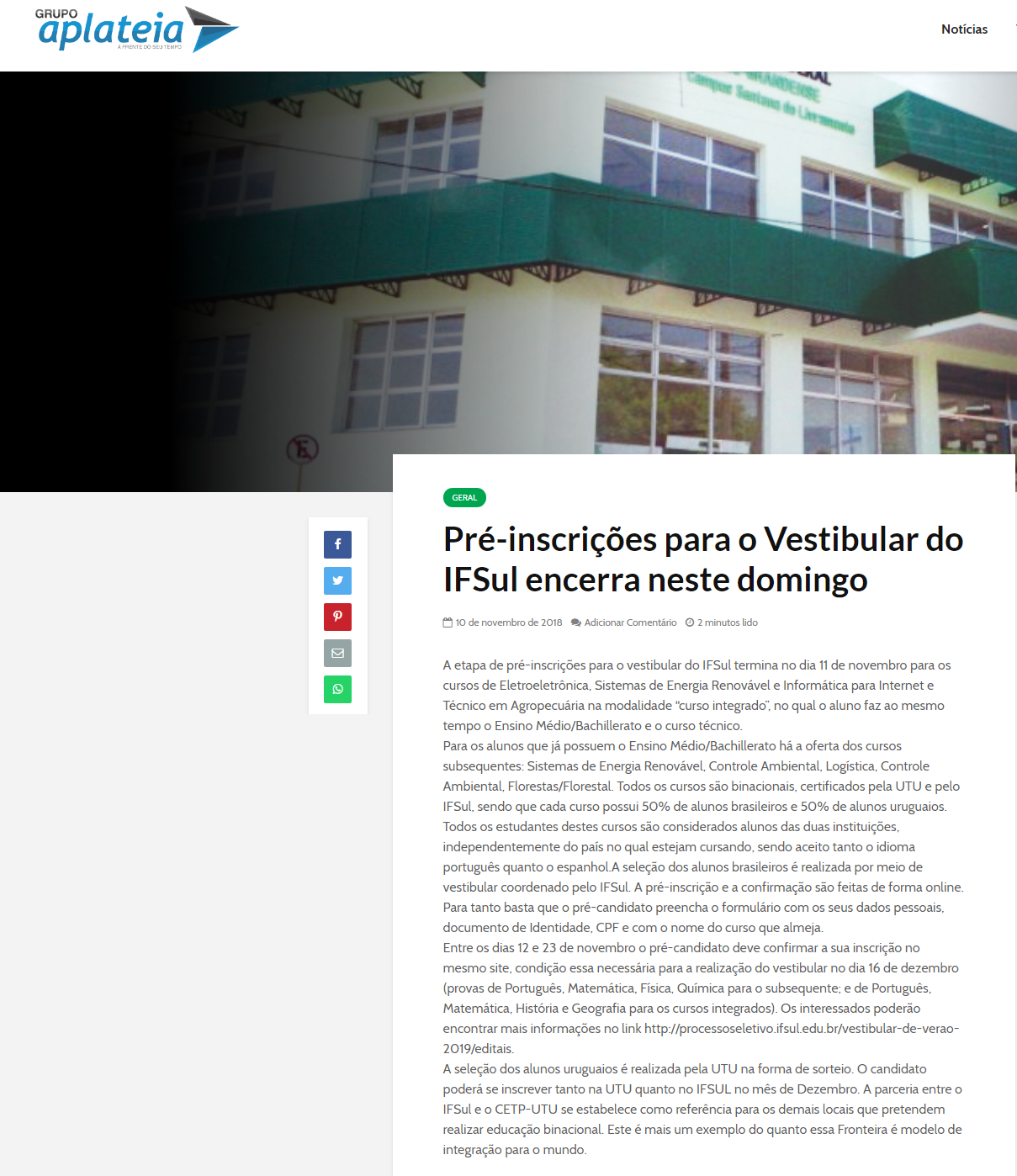 Jornal A Plateia - Inscrições para o Vestibular do IFSul encerram neste domingo