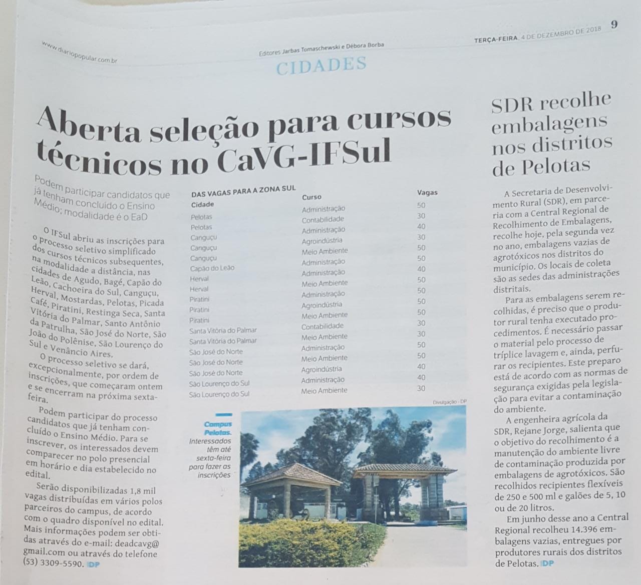 Diário Popular - Aberta seleção para cursos técnicos no IFSul
