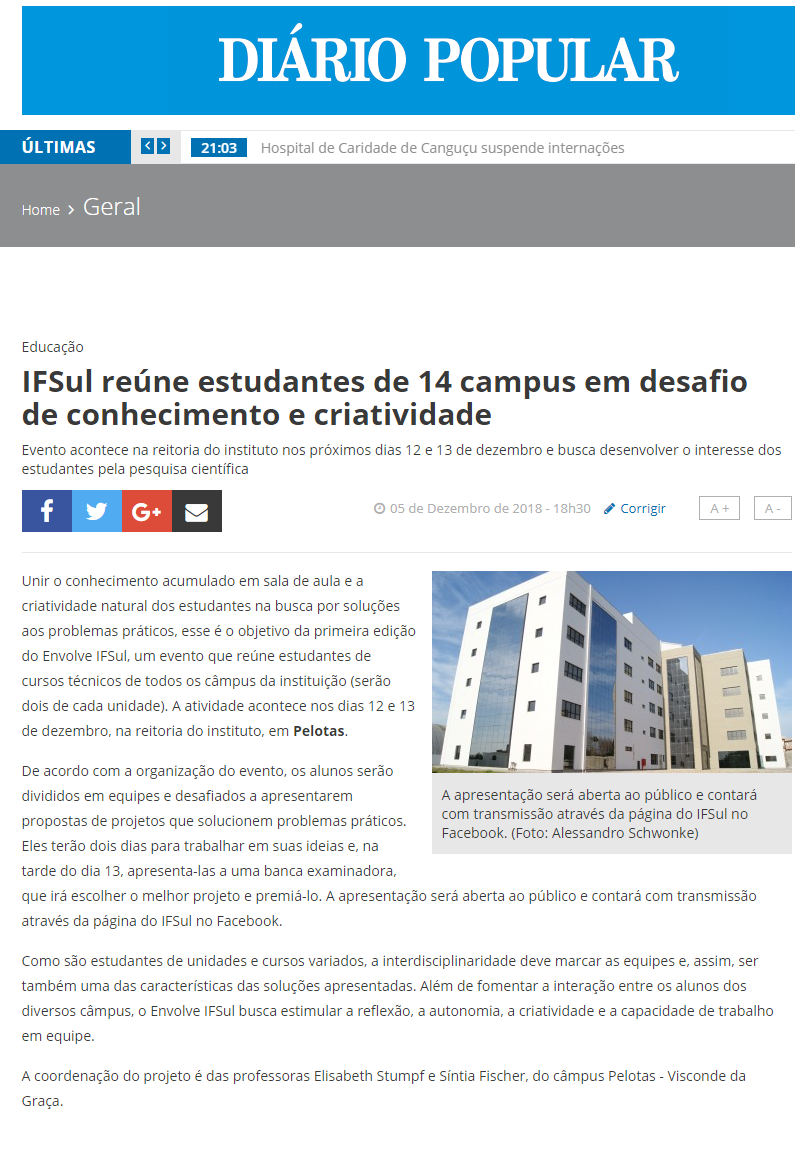 Diário Popular - IFSul reúne estudantes de 14 câmpus em desafio de conhecimento e criatividade