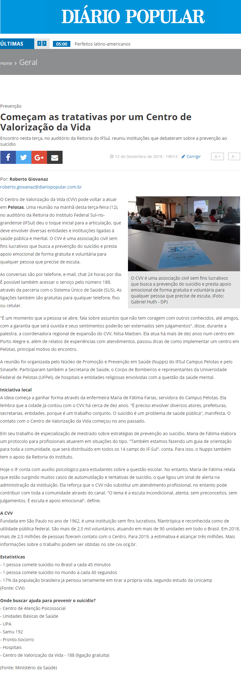 Diário Popular - Começam as tratativas por um Centro de Valorização da Vida