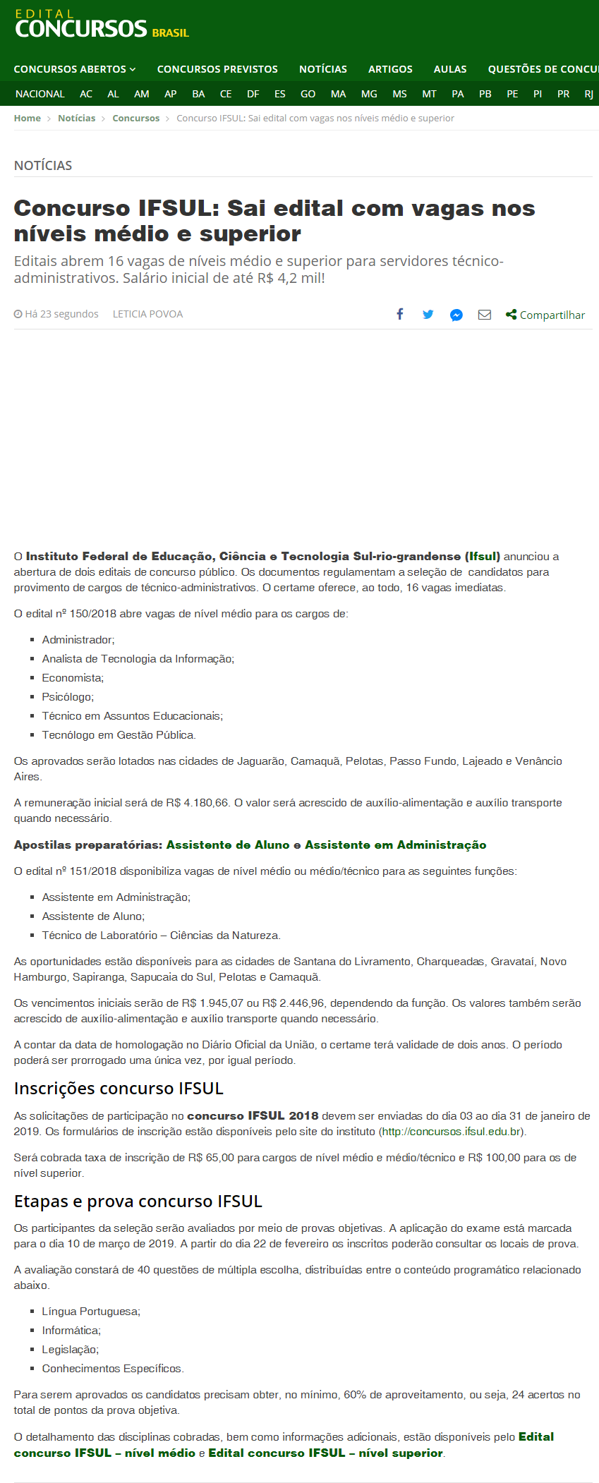 Edital Concursos Brasil - Concurso IFSul: saiu edital com vagas nos níveis médio e superior