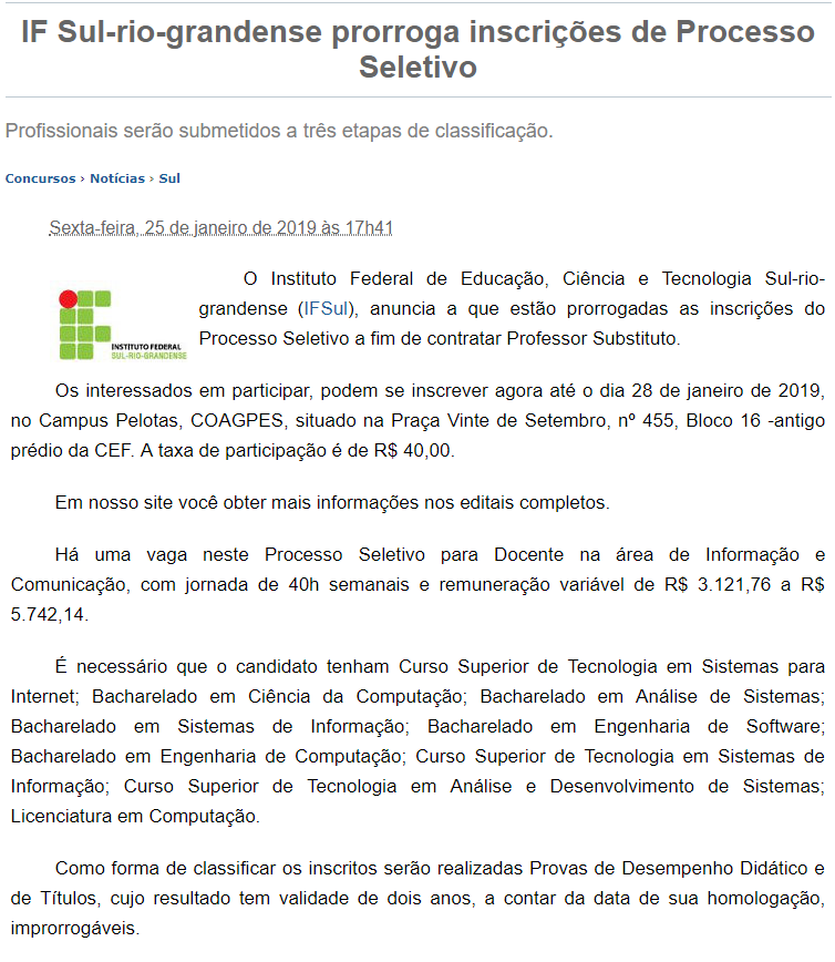 PCI Concursos - IFSul prorroga inscrições do processo seletivo
