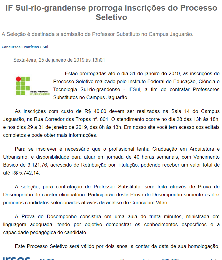 PCI Concursos - IFSul prorroga inscrições do processo seletivo