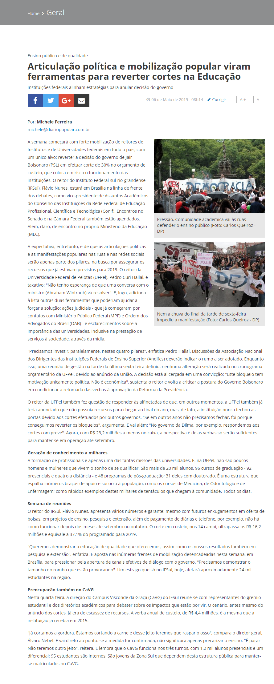 Diário Popular - Articulação política e mobilização popular viram ferramentas para reverter cortes na Educação