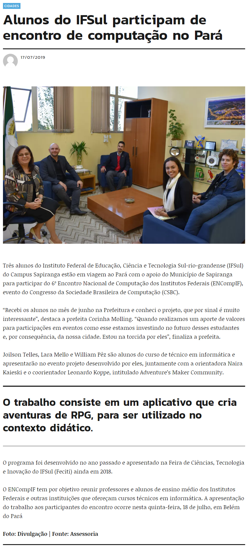 Portal Expansão - Alunos do IFSul participam de encontro de computação no Pará
