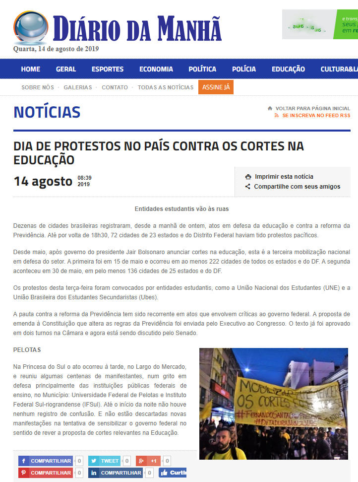 Diário da Manhã - Dia de protestos no país contra os cortes na educação