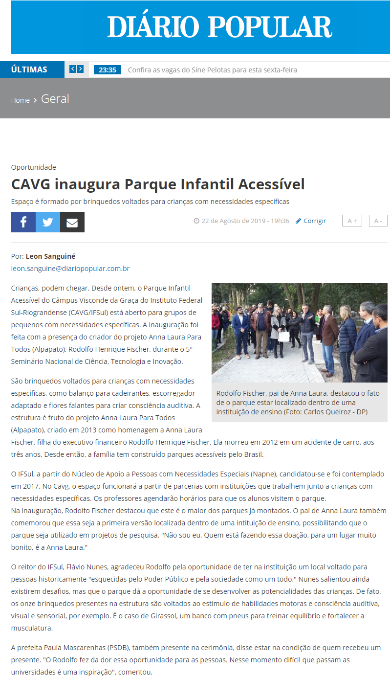 Diário Popular - CaVG inaugura Parque Infantil Acessível
