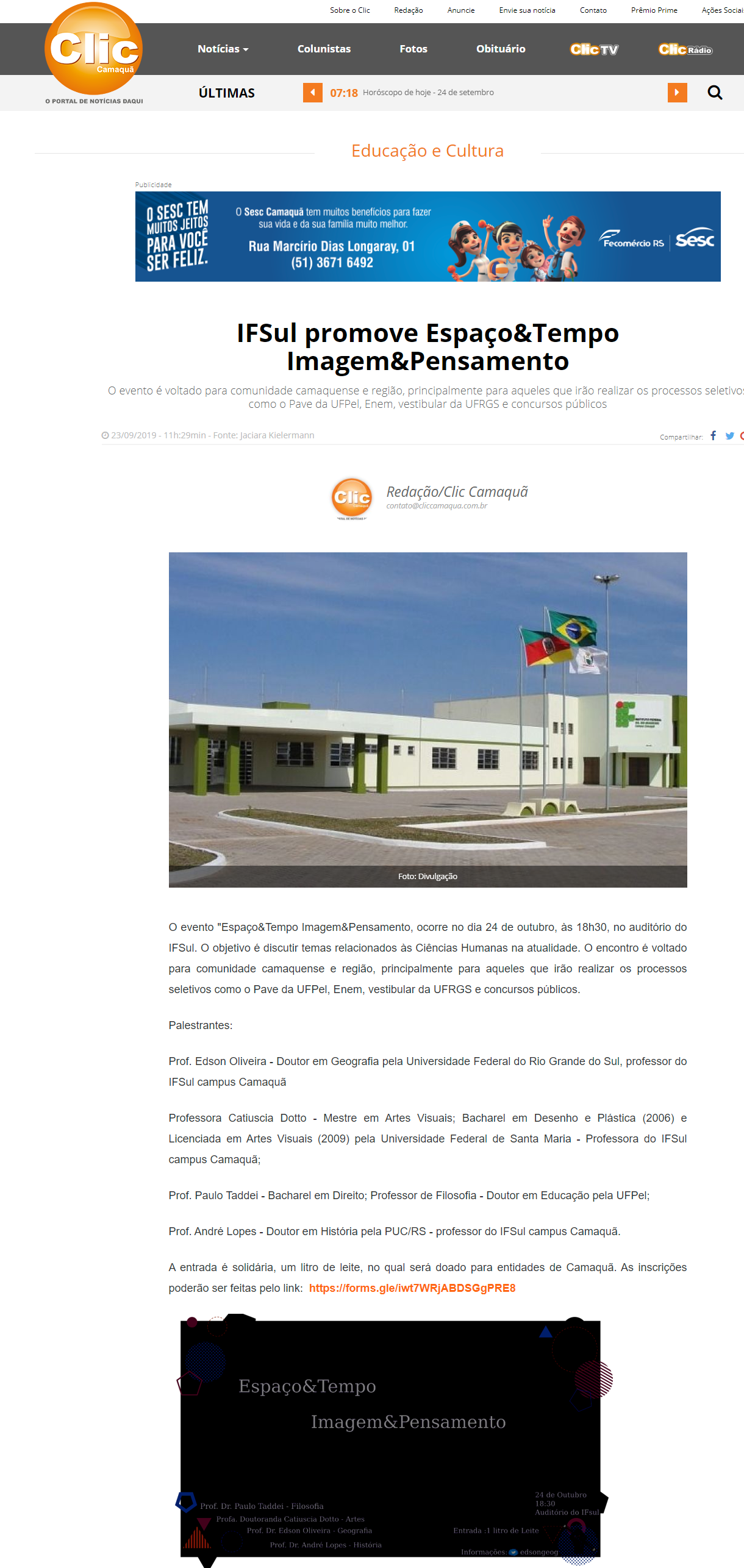 Clic Camaquã - IFSul promove Espaço&Tempo Imagem&Pensamento