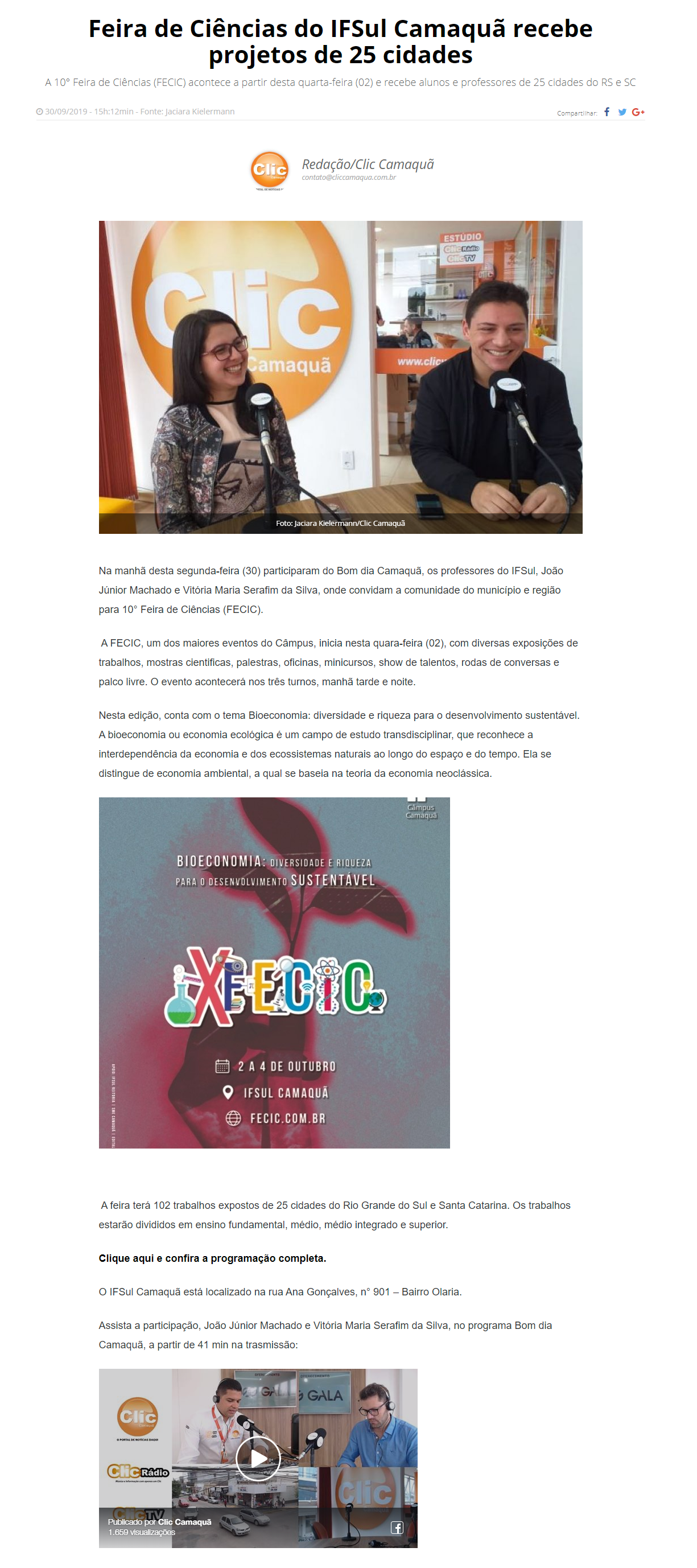 Clic Camaquã - Feira de Ciências do IFSul Camaquã recebe projetos de 25 cidades