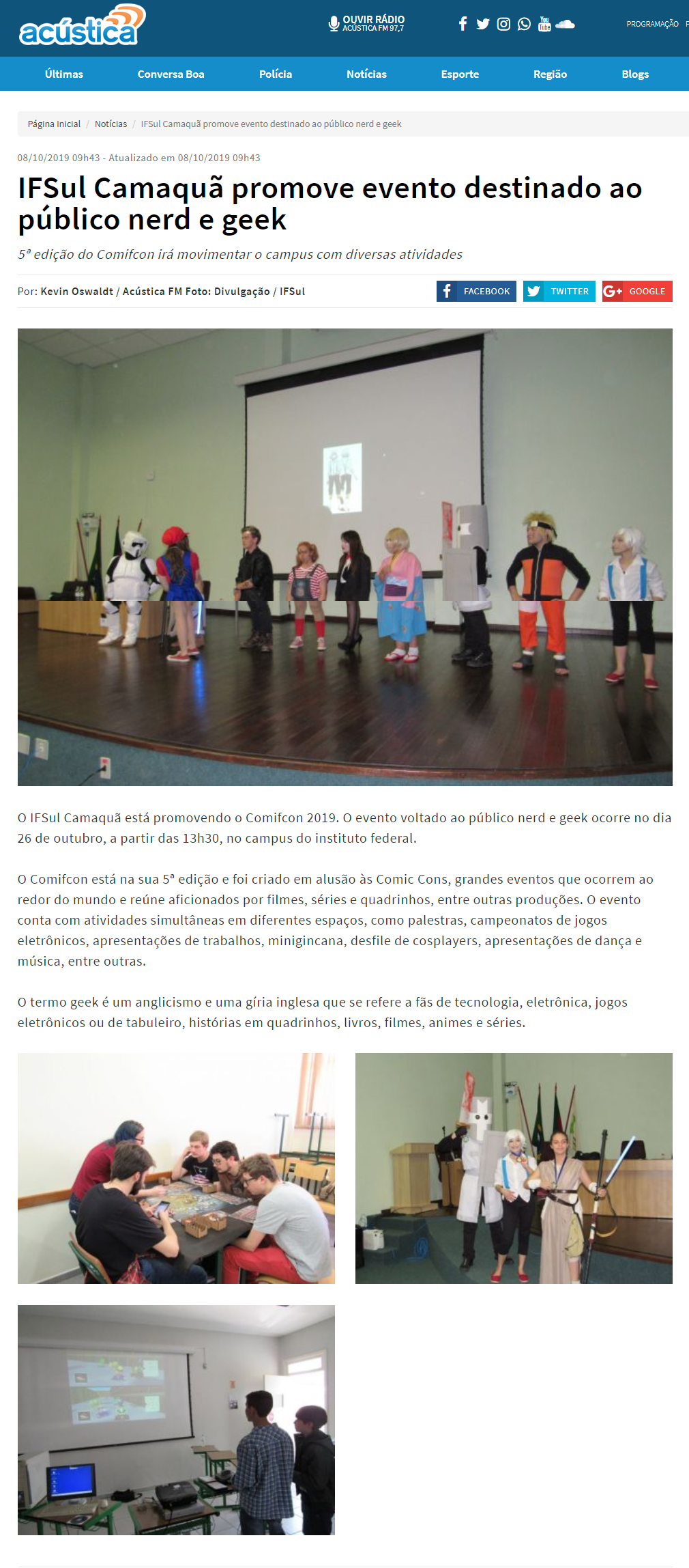 Rádio Acústica FM - IFSul Camaquã promove evento destinado ao público nerd e geek