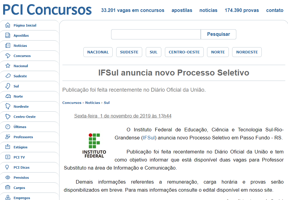 PCI Concursos - IFSul anuncia novo processo seletivo