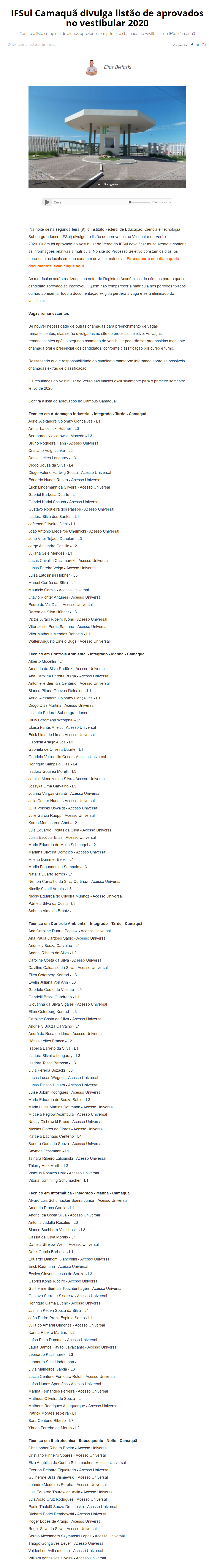 Clic Camaquã - IFSul Camaquã divulga listão de aprovados no vestibular 2020